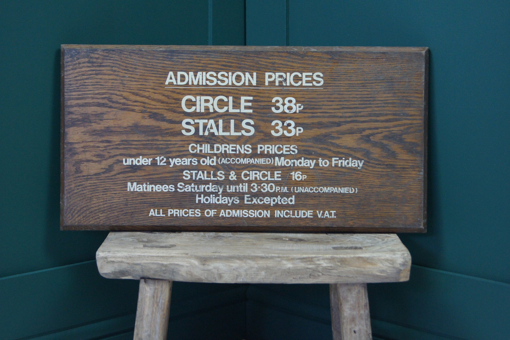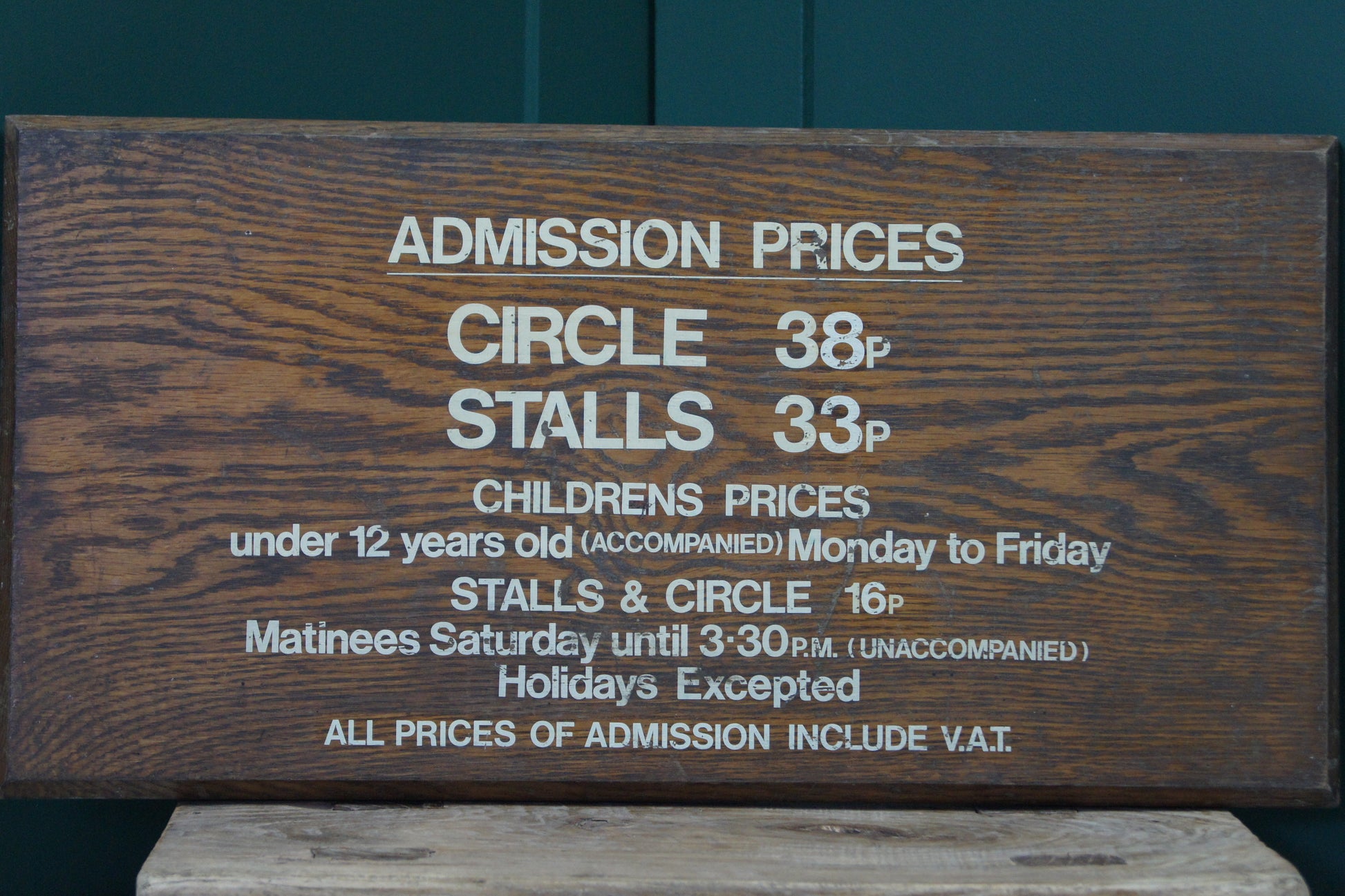 Add a touch of rustic charm to your space with this original wooden admissions theatre sign. Featuring listings of prices for both the circle and stalls, it brings vintage theatre vibes right to your walls. Perfect for drama lovers and décor enthusiasts alike, this sign invites you to step into a world where every seat counts and stories come alive.
