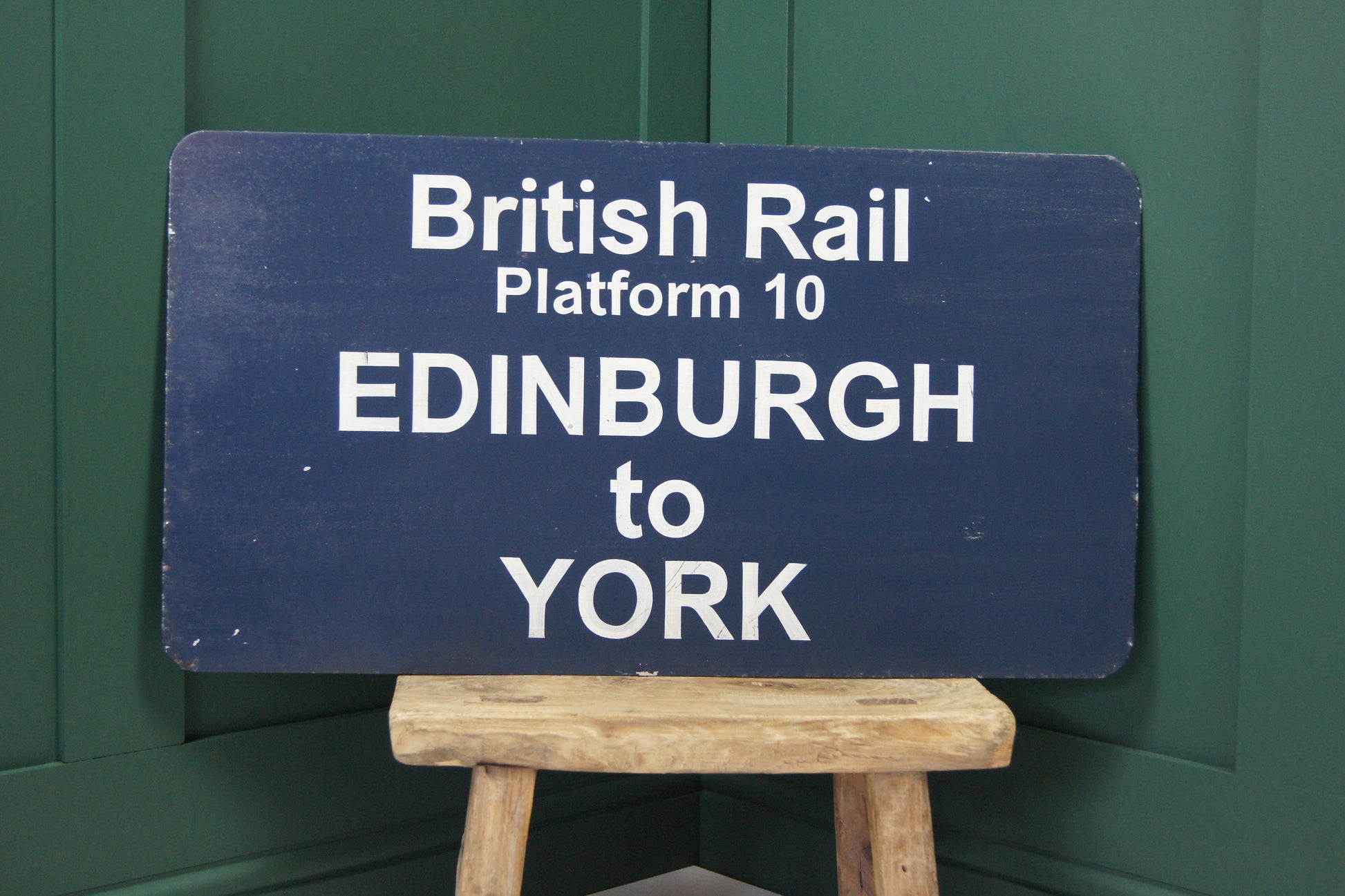 Add a piece of railway charm to your space with this playful reproduction British Rail sign from Edinburgh to York. Crafted in classic blue and designed with a worn vintage look, it brings a nostalgic trackside vibe right to your walls. Perfect for train lovers or anyone wanting a touch of British travel decor.
