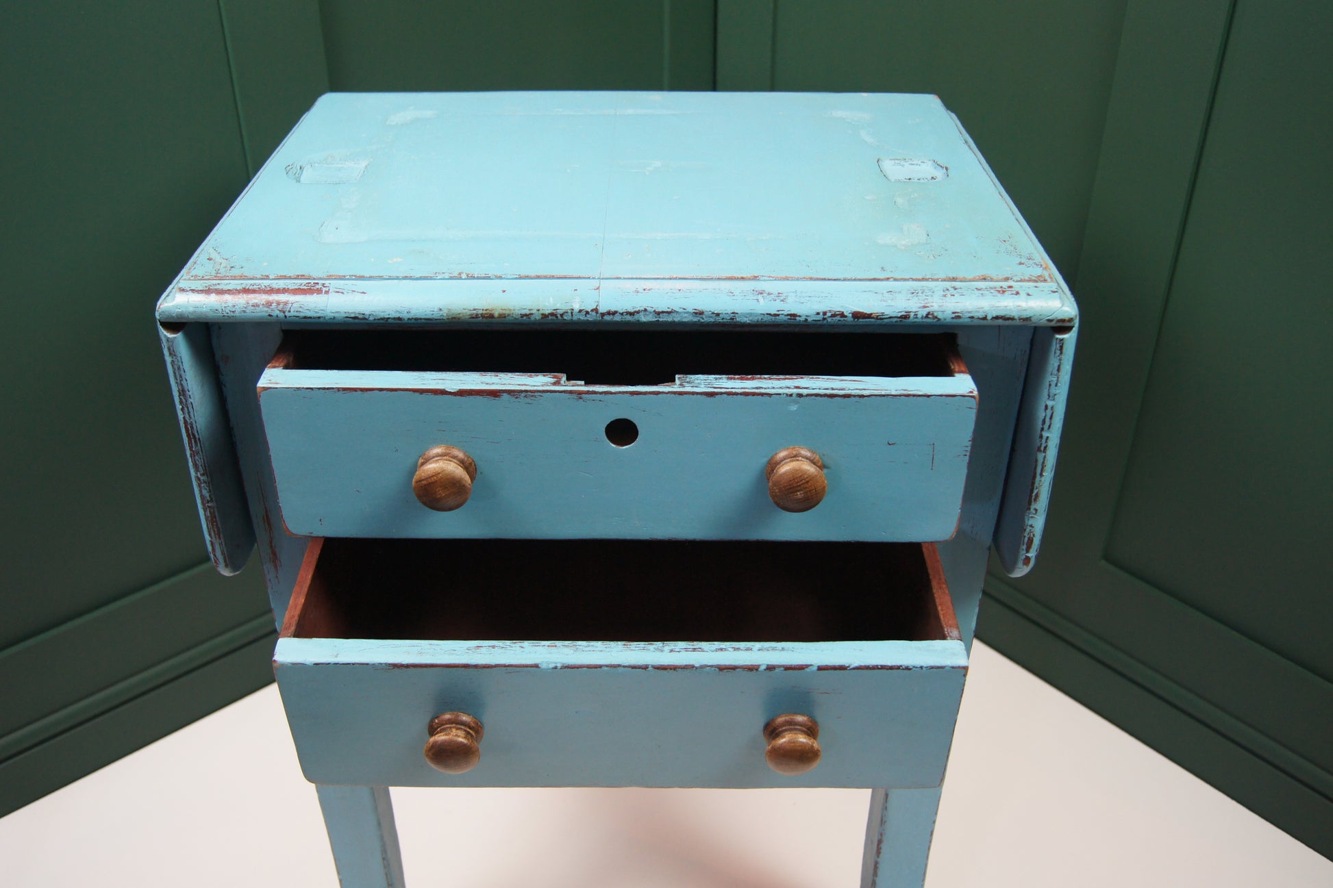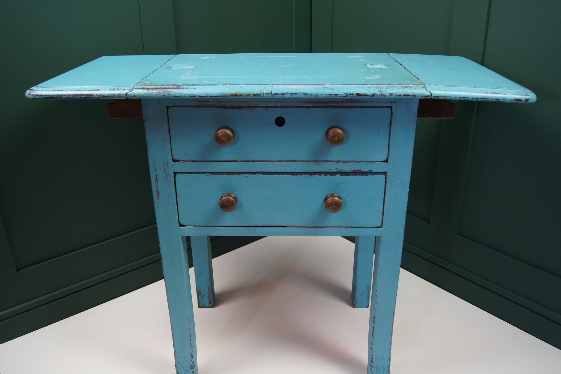 Add a splash of French flair to your space with this charming antique book press table. Upcycled in a elegant turquoise blue, it features folding tables on both sides and two handy drawers, perfect for keeping treasures tucked away. The original book press seating remains, inviting you to imagine its storied past. Full of character and playful elegance, this upcycled piece brings a delightful touch of French chic to any room.