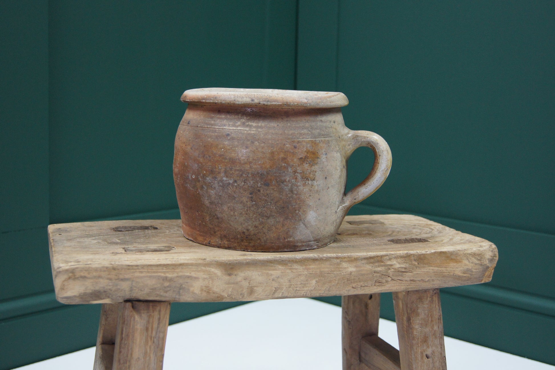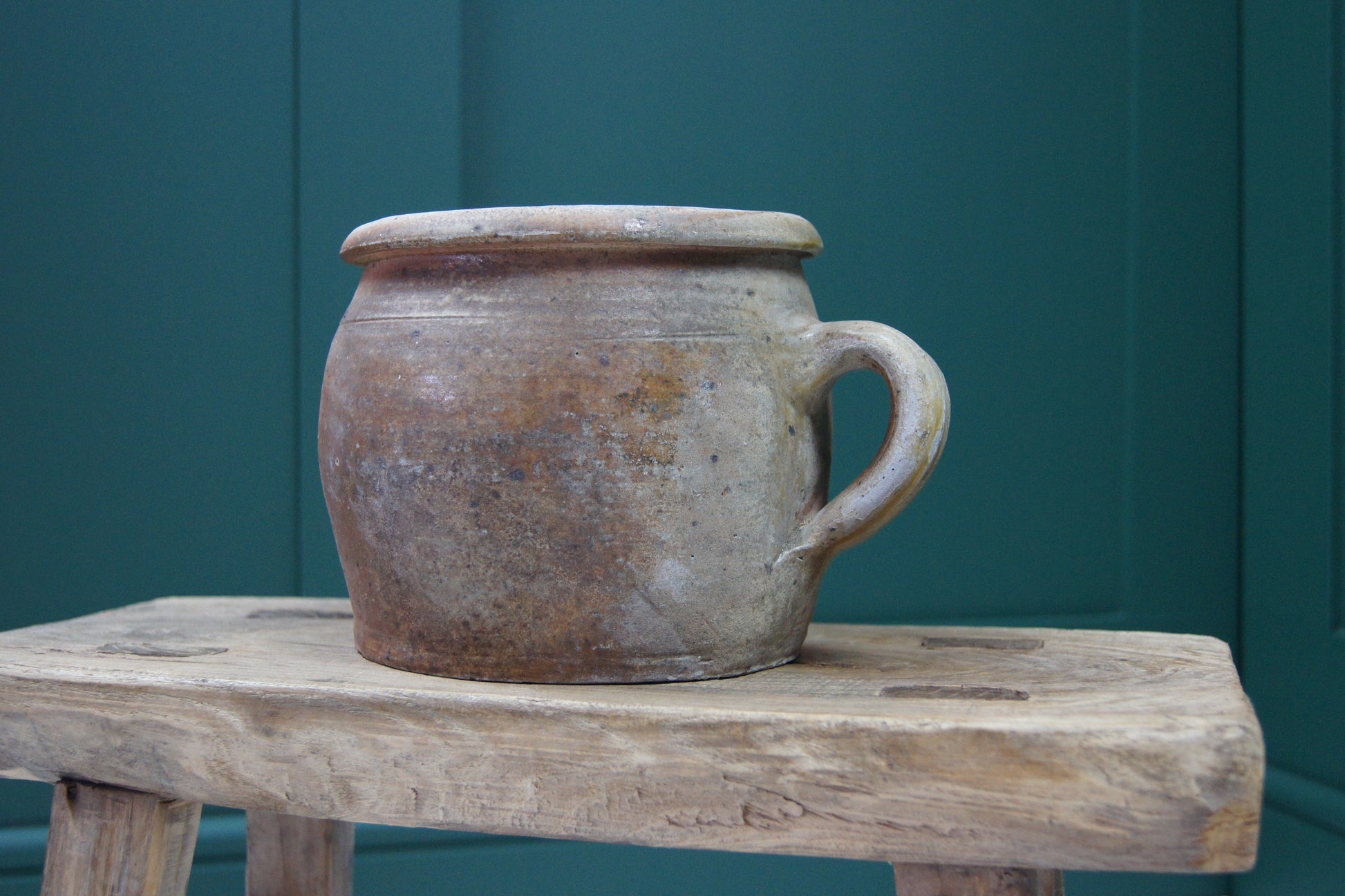 Add a touch of rustic French charm to your home with this 19th century handmade confit pot. Showcases traditional craftsmanship, featuring a sturdy handle and authentic design. Perfect piece for rustic kitchen décor, whether used to display fresh flowers, dried herbs, or kitchen utensils, it brings character and warmth to any space.