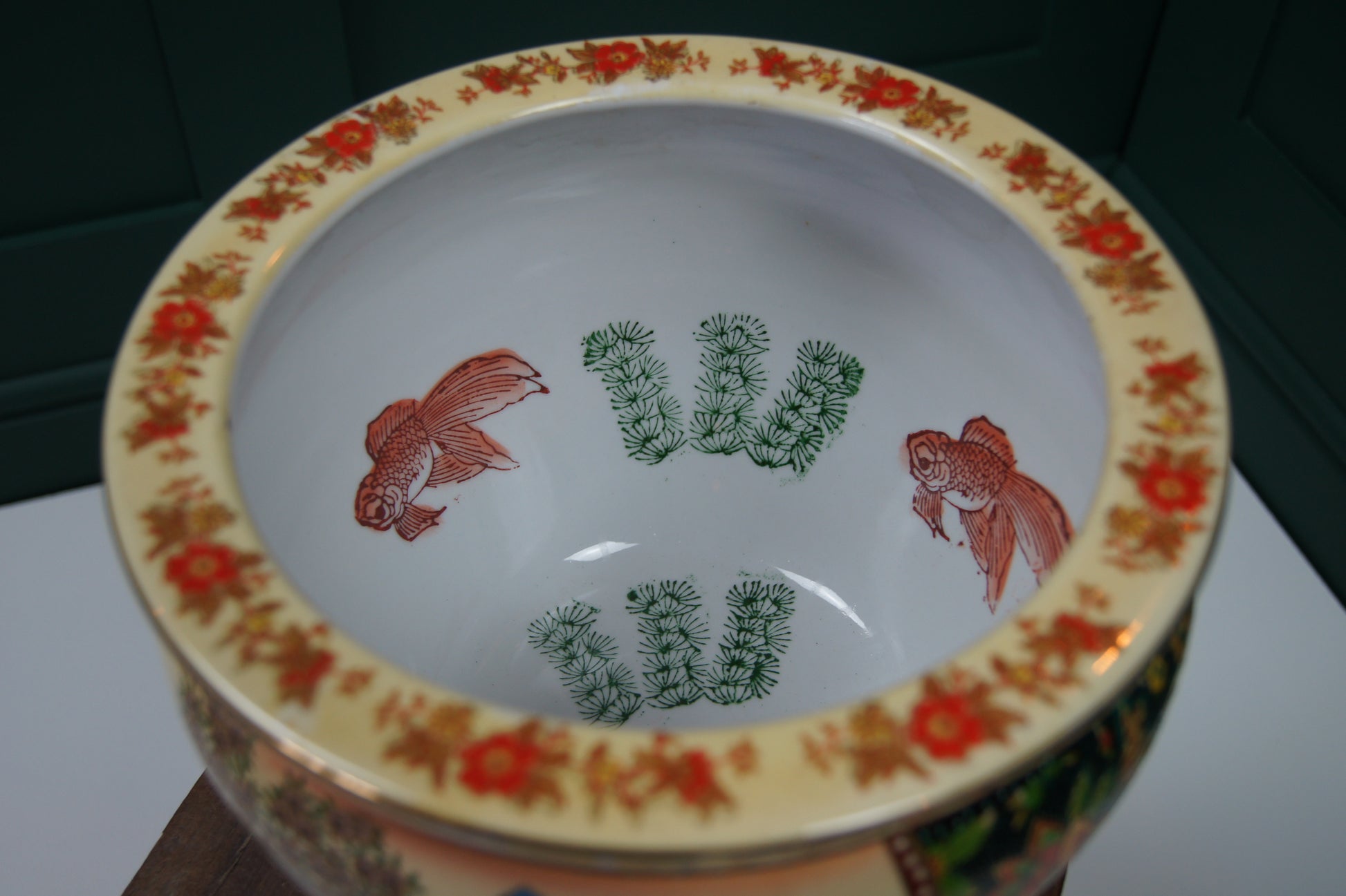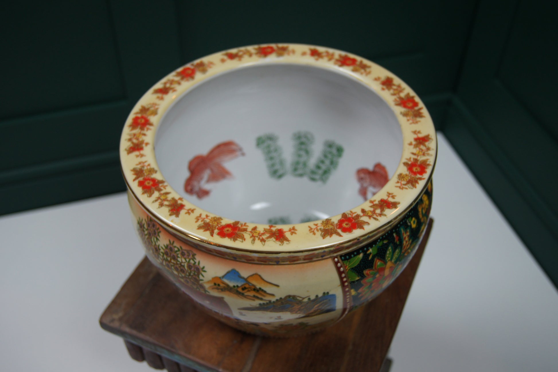 This gilt oriental Chinese planter showcases a refined design featuring a series of geishas and delicate floral motifs. Expertly crafted with a rich gilt finish, it combines traditional Asian artistry with elegant decoration, making it a distinguished piece for collectors and enthusiasts of fine oriental ceramics. Ideal for displaying plants or as a decorative accent, this planter adds a sophisticated cultural touch to any interior setting.