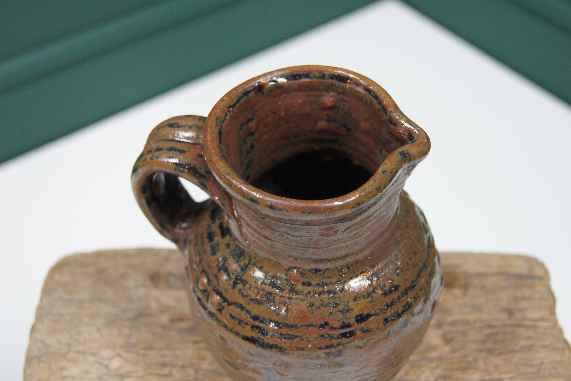 Exquisite handmade jug, crafted in Lincoln, features a stunning brown and black glaze that enhances its artisanal character. This piece reflects skilled craftsmanship, with a sturdy form ideal for both decorative display and functional use.