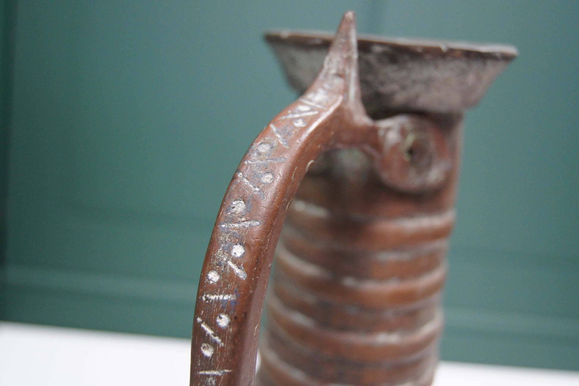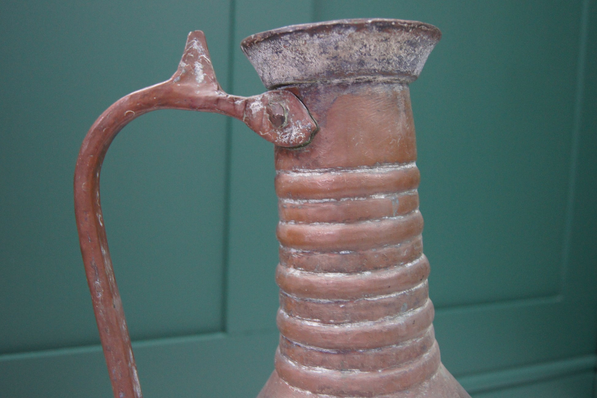 Infuse your space with a touch of history using this large early 19th-century copper water ewer. This charming antique, with its lovely patina and signs of wear, brings vintage elegance that’s perfect for sparking conversation or adding character to your décor. Whether on display or in use, it’s a playful reminder that everyday objects can tell captivating stories!