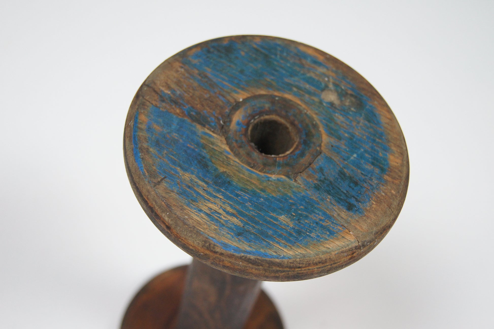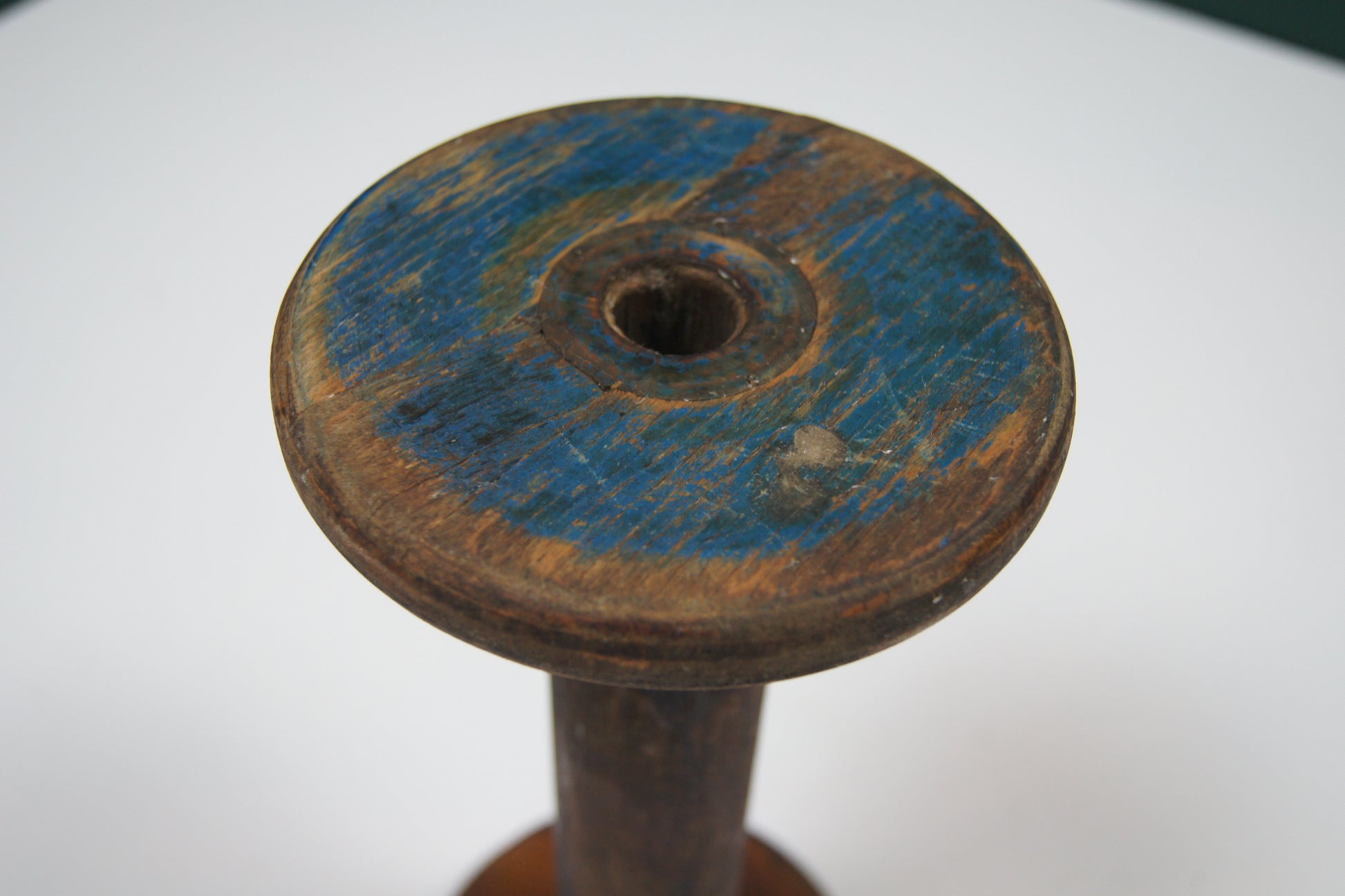 Add a splash of colour and charm with this extra large vintage blue wooden bobbin! Gentle signs of wear that only add to it's rustic appeal. Perfect for crafting projects or as quirky shabby chic accents around your home.