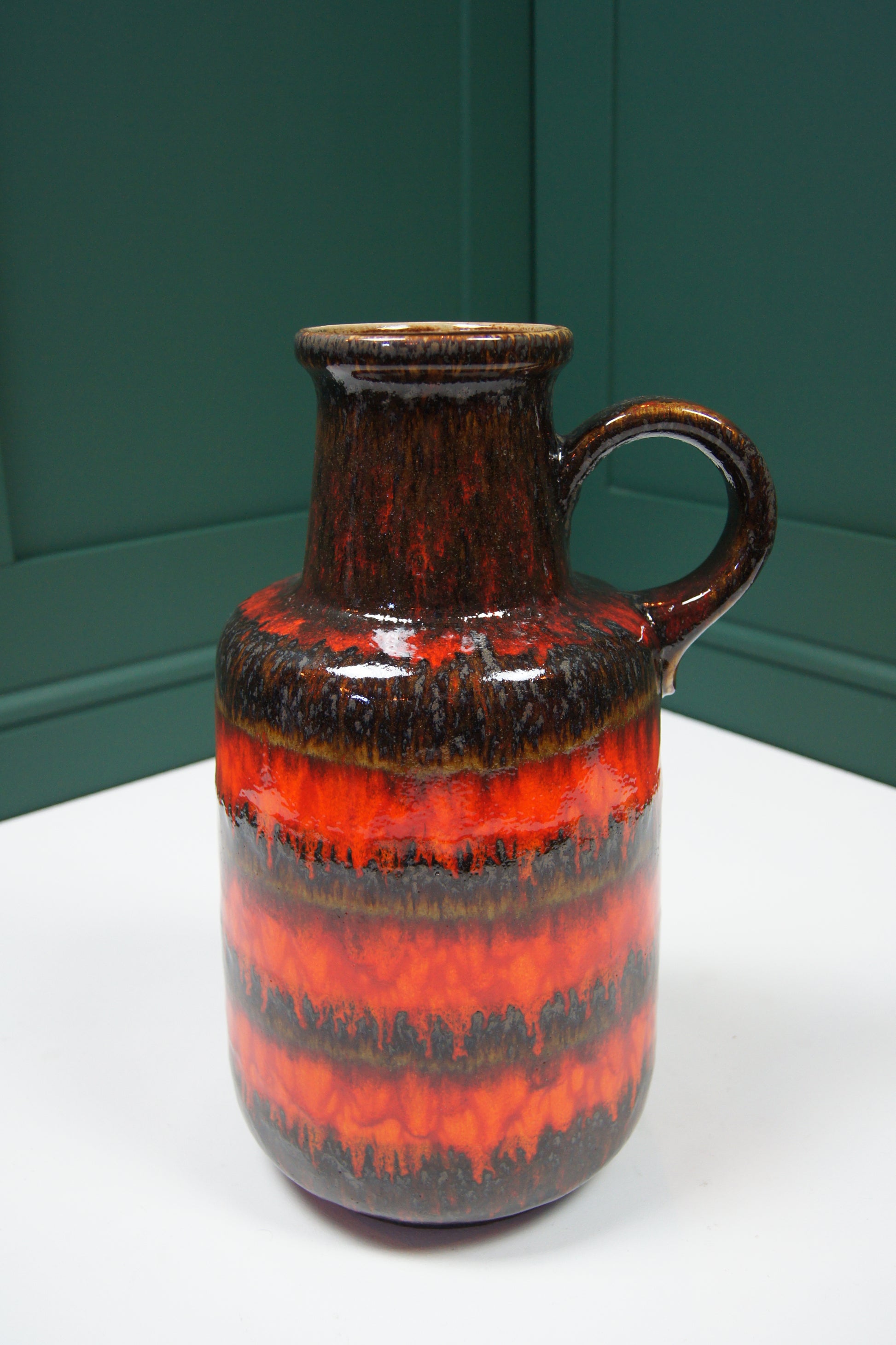 Add a touch of vintage charm to your home with West German pottery, known for its bold glazes, sculptural shapes, and timeless mid-century design. Made between the 1950s and 1980s, each piece features rich colours like orange, blue, and earthy browns, with unique glossy or “fat lava” textures. The numbers on the base indicate the shape and height (e.g. 517-20 = shape 517, 20 cm tall), alongside the “W. Germany” mark confirming authenticity. Perfect as a decorative vase, planter, or statement accent, these ceramics bring warmth and character to any space. Explore our full West German pottery collection to find the perfect piece for your home.