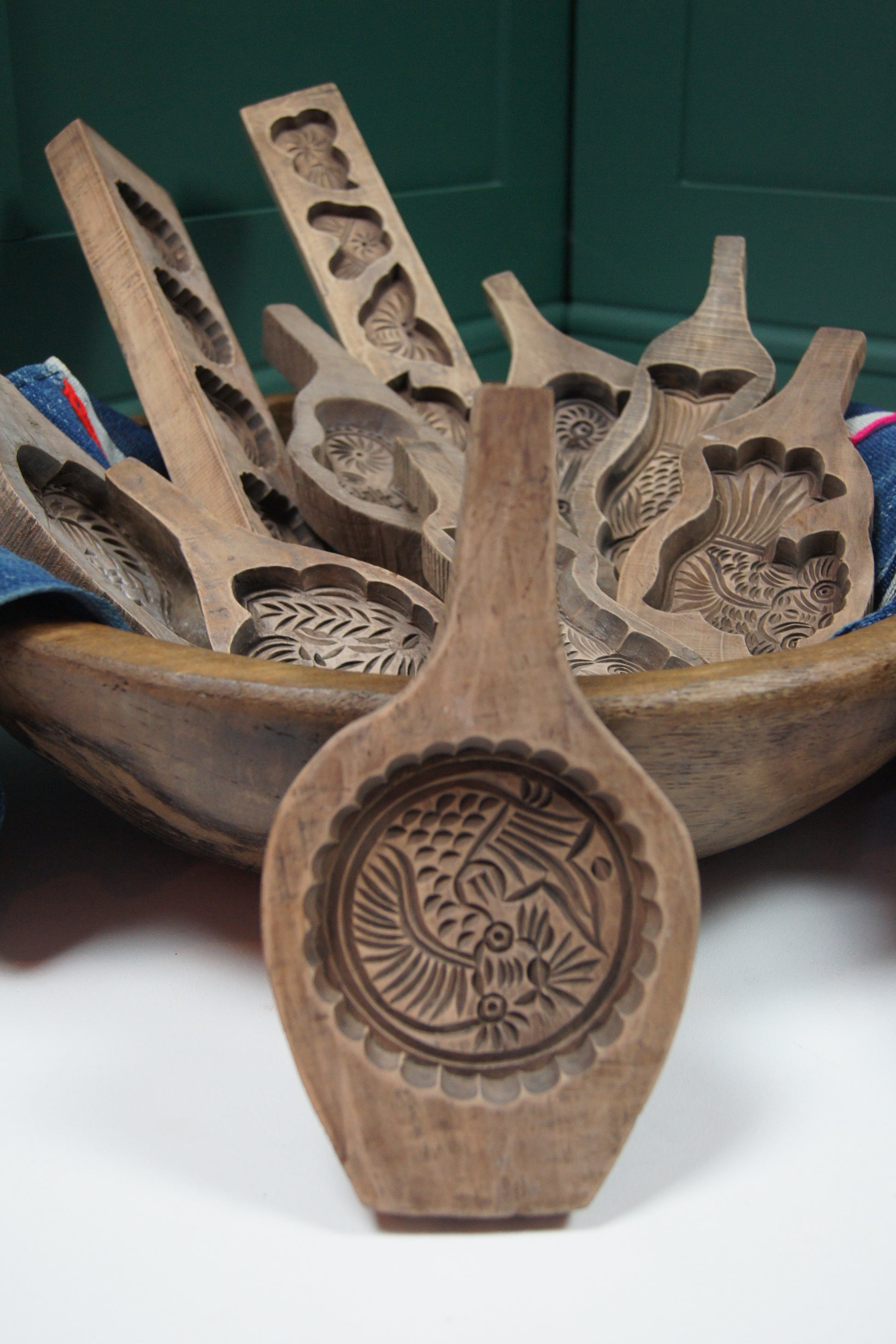 Add a dash of tradition and charm to your home with these vintage Chinese/Japanese cake mold. Traditionally used for crafting delightful sweets, moon cakes, or shaping rice and other foods. Whether you use it for baking or as a stunning display, these vintage treasures bring a playful touch of culture and creativity to your culinary space.