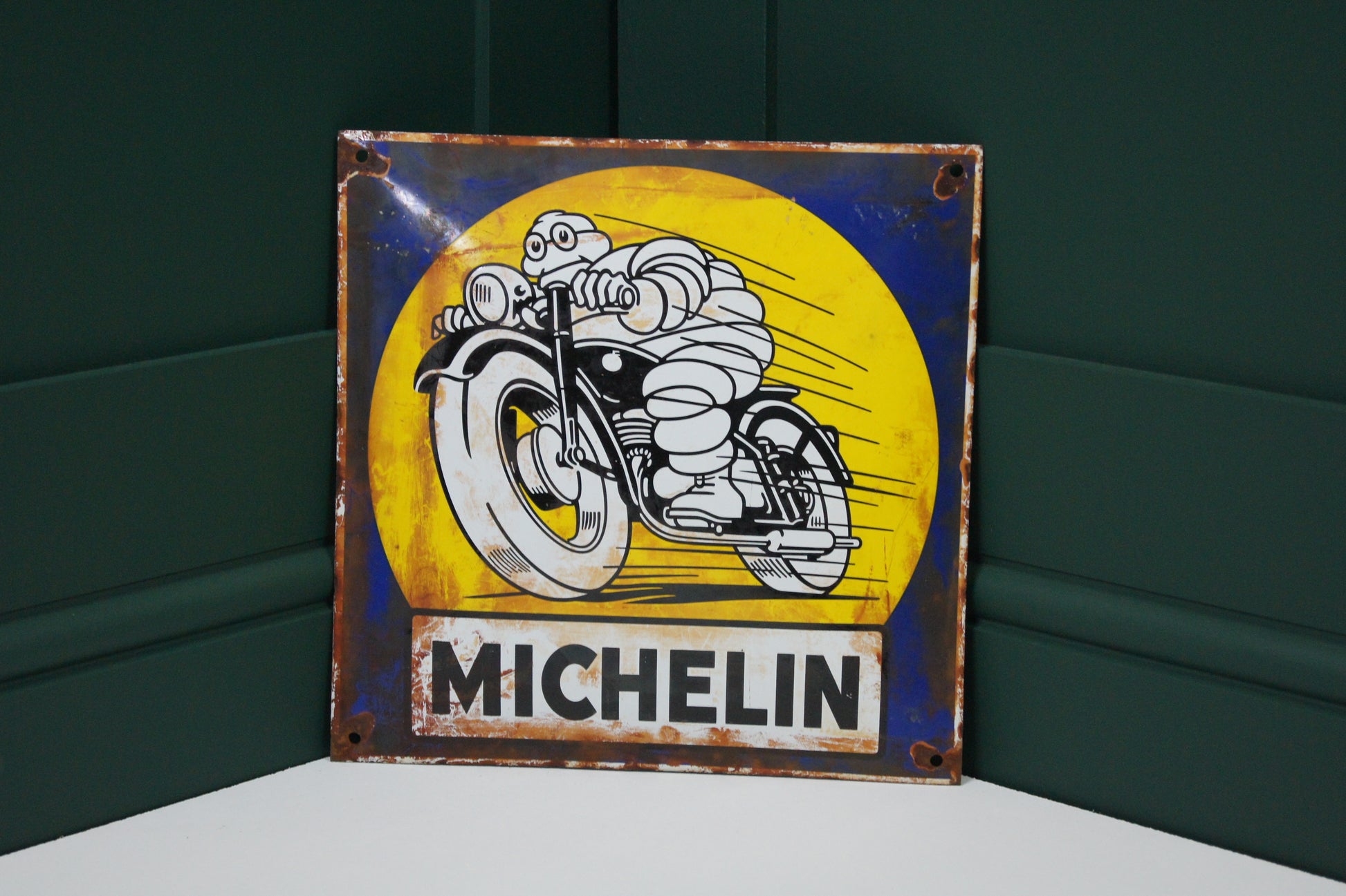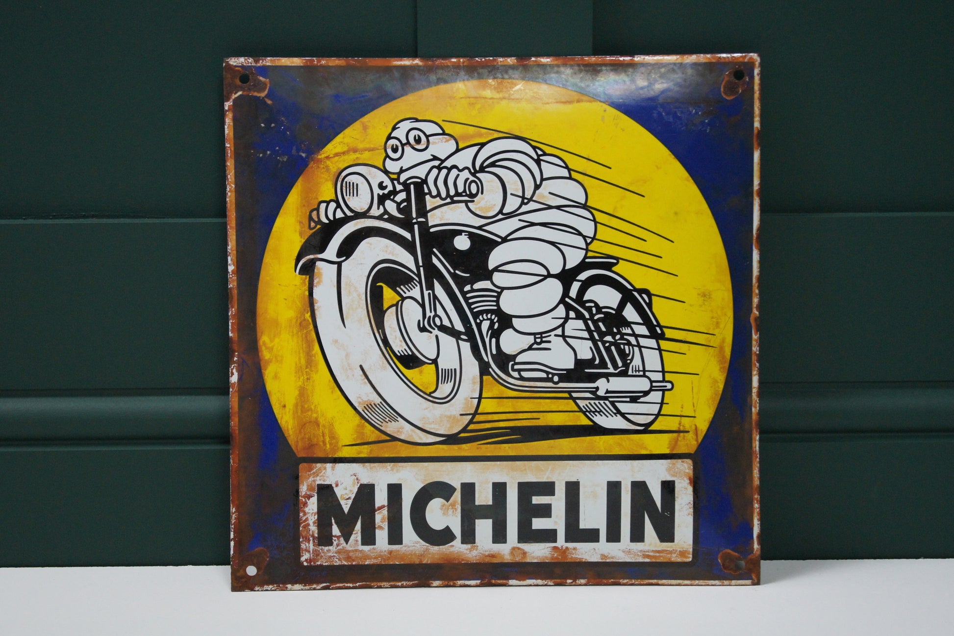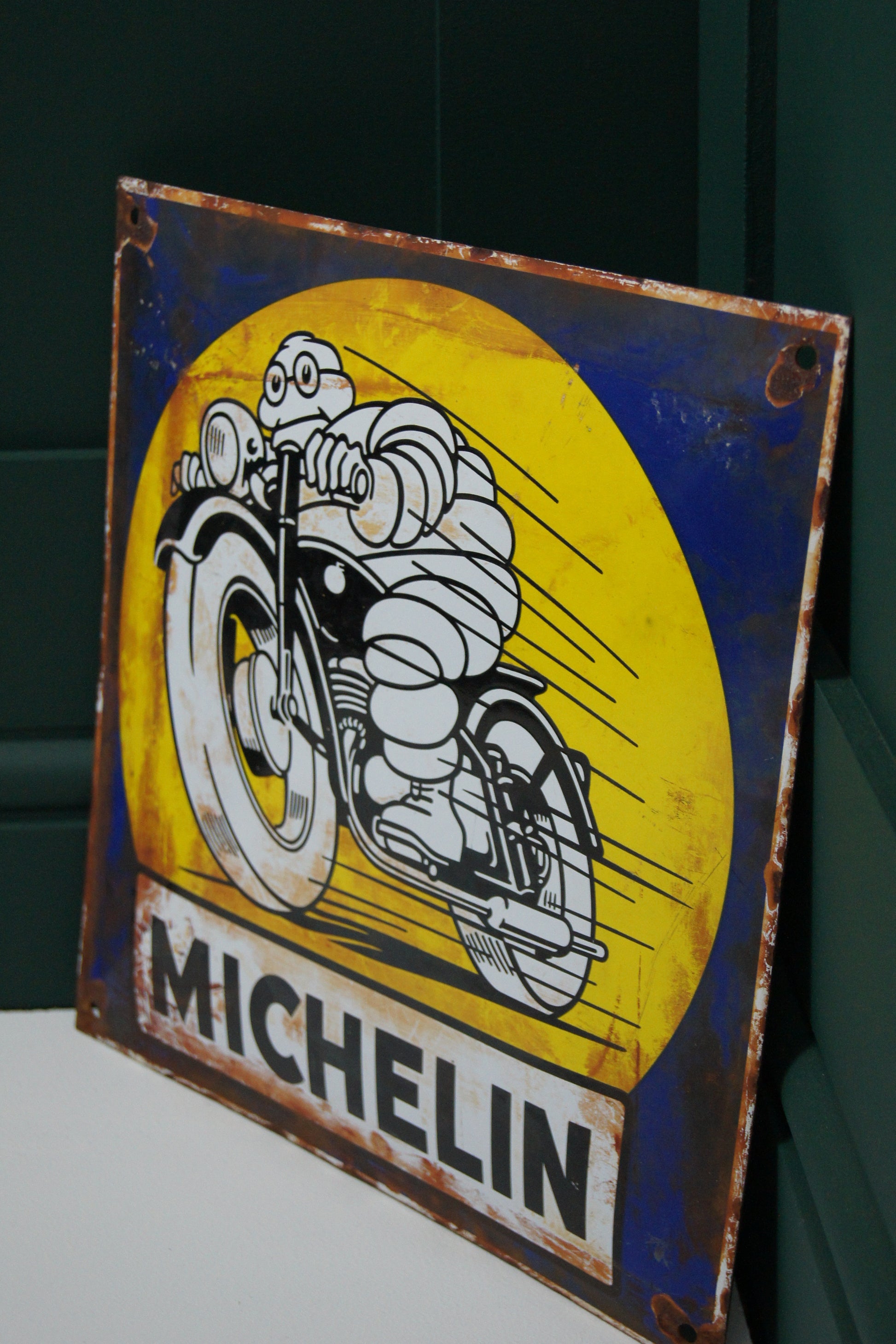 Add a touch of nostalgia to your space with this Michelin motorbike sign. Metal with a charming vintage look, it brings classic motorbike spirit to your décor. Perfect for garages, man caves, or any spot needing a bit of retro flair and playful character.