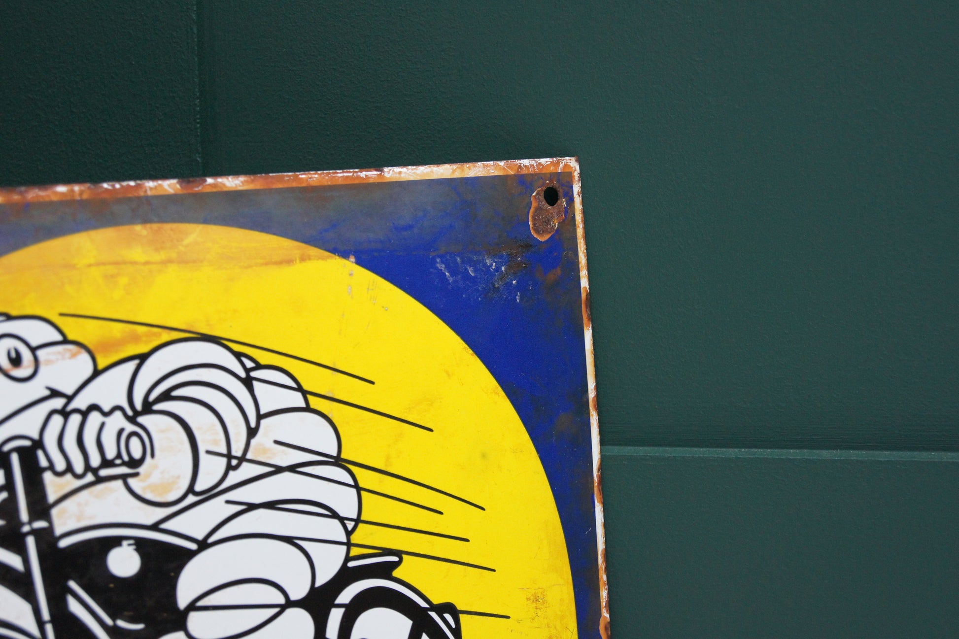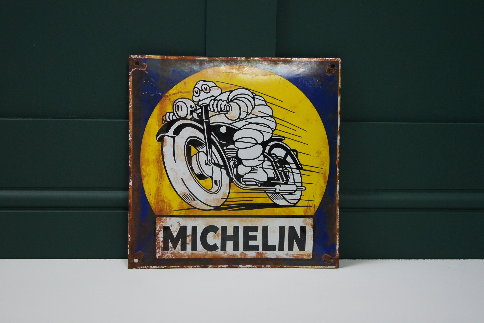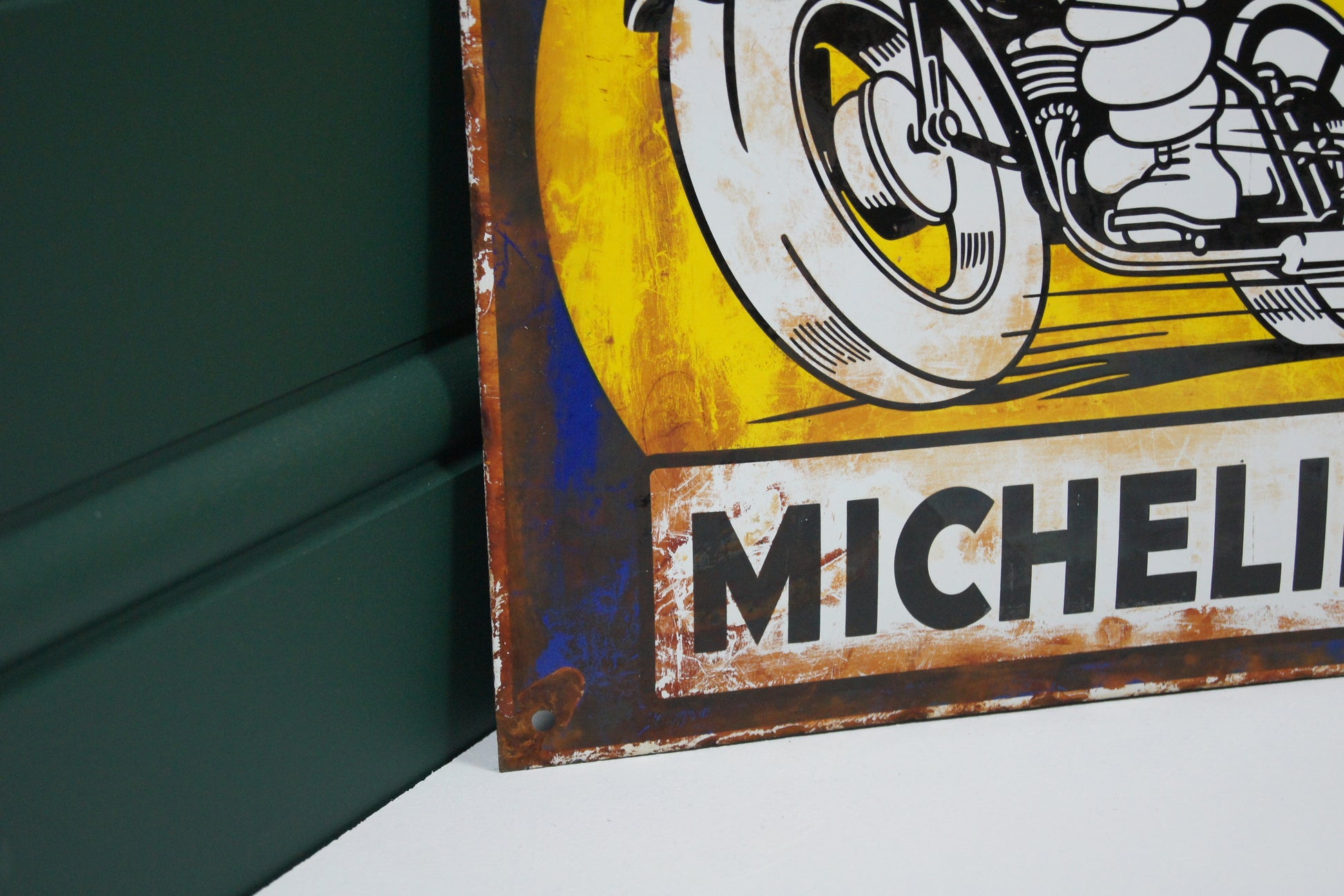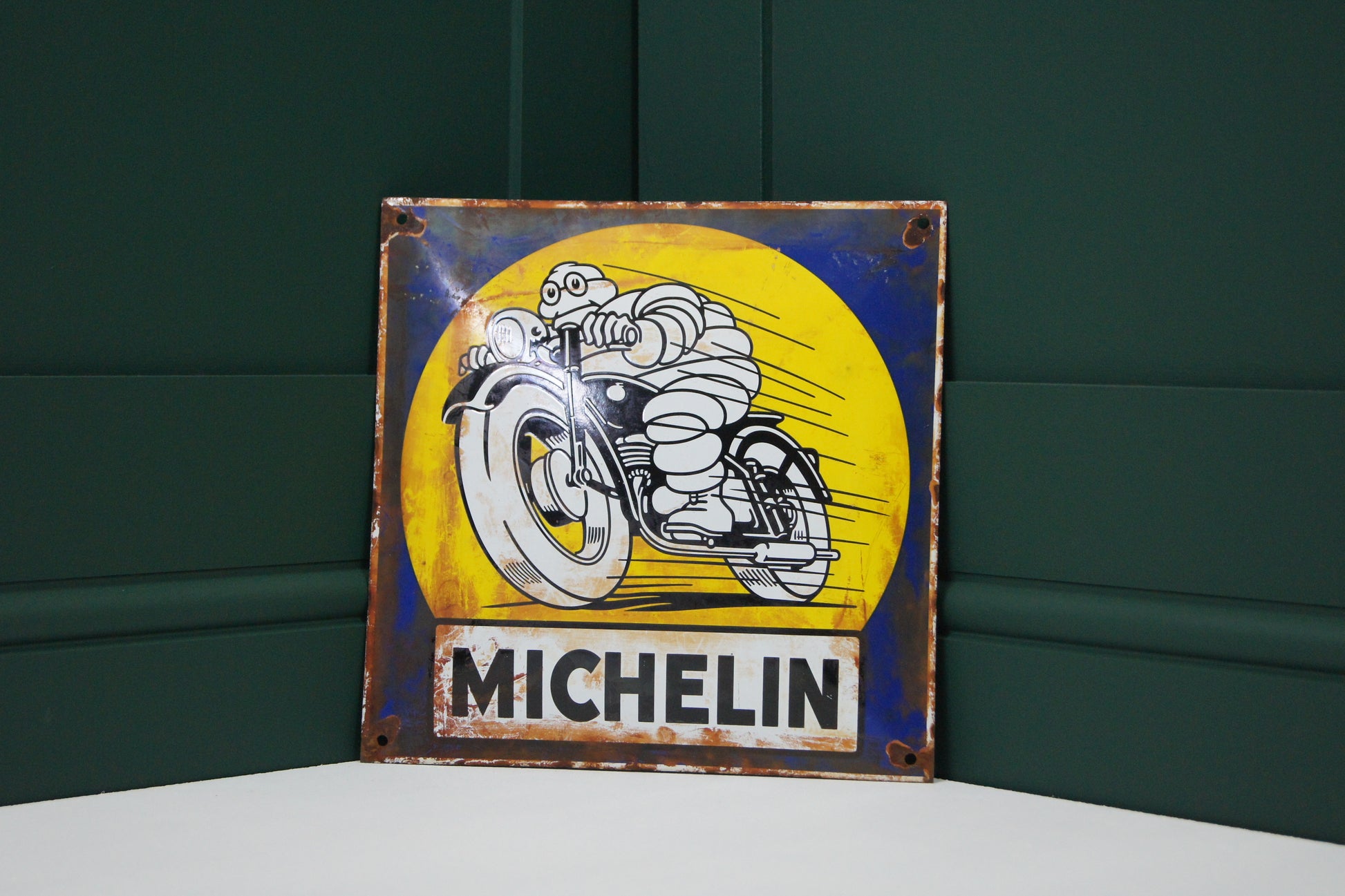 Add a touch of nostalgia to your space with this Michelin motorbike sign. Metal with a charming vintage look, it brings classic motorbike spirit to your décor. Perfect for garages, man caves, or any spot needing a bit of retro flair and playful character.