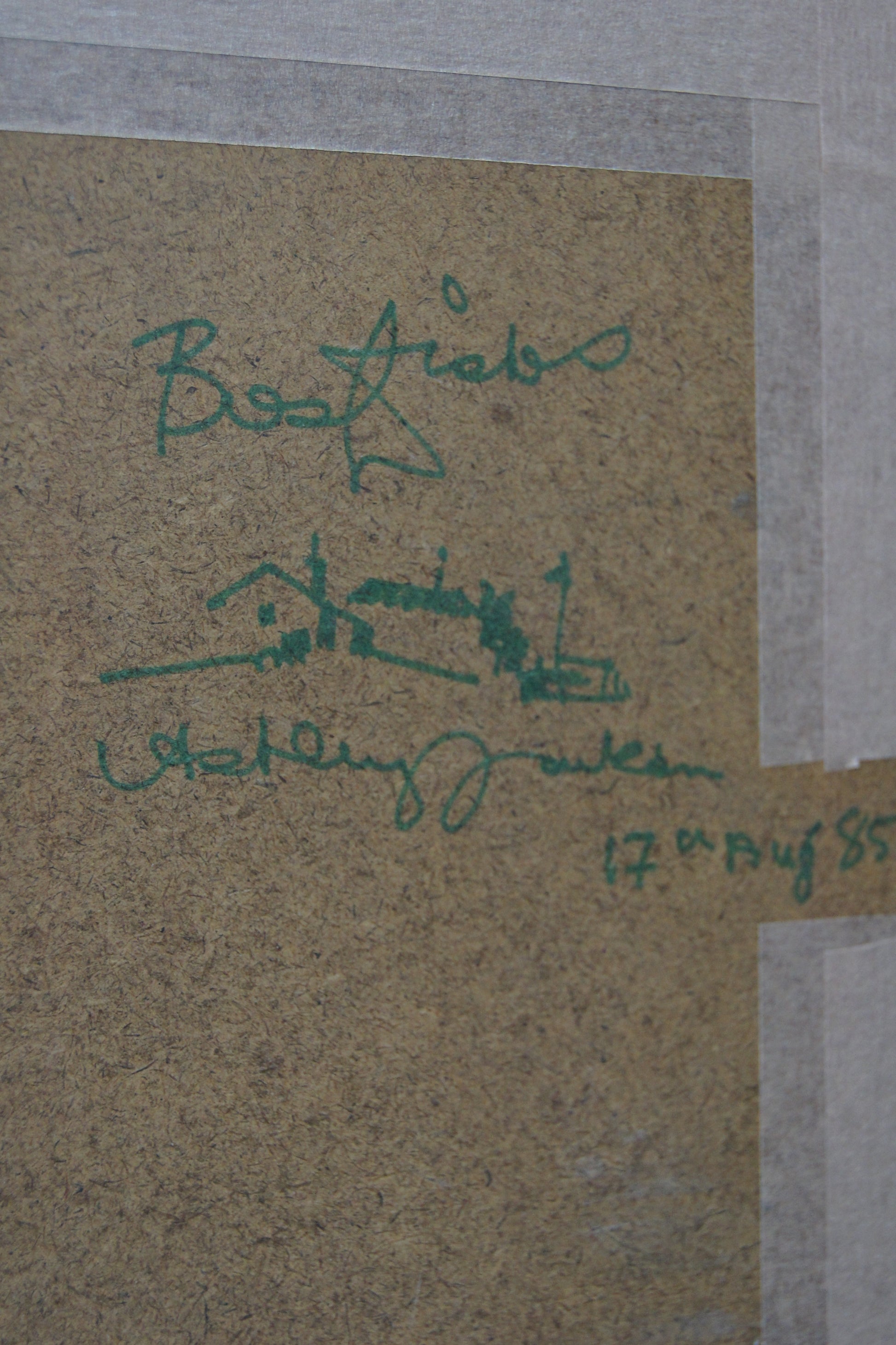 This professionally framed, signed Ashley Jackson framed print, titled "Cold & Damp on Bradshaw Moor," captures the atmosphere of the moorland landscape with remarkable detail and mood. Dated 1985, this piece showcases Jackson’s mastery in portraying natural weather conditions and terrain texture, making it a distinguished addition for collectors and lovers of British countryside art.