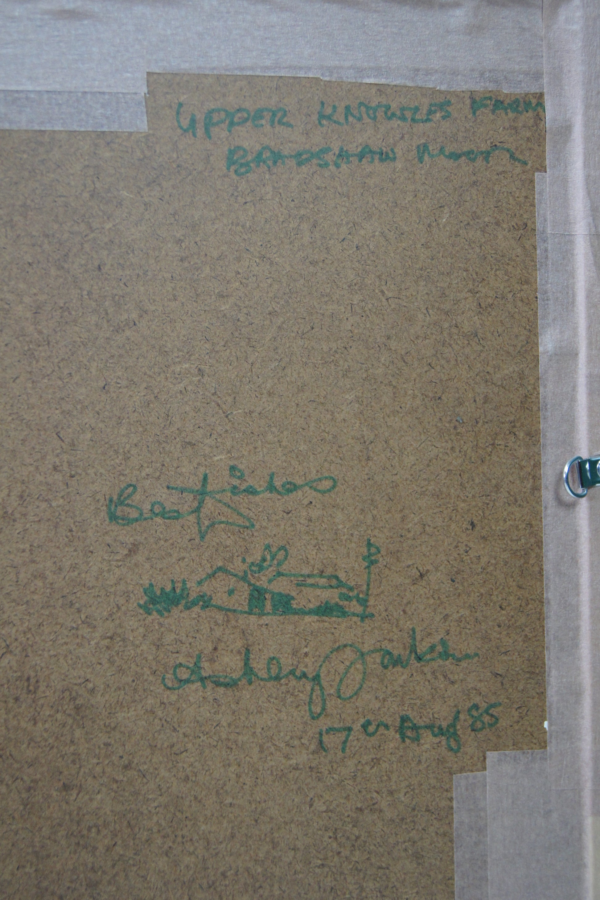 This signed Ashley Jackson framed print, dated 1985, captures the timeless beauty of Upper Knowles Farm on Bradshaw Moor. Professionally framed, this artwork offers a distinguished addition to any collection, showcasing Jackson’s masterful technique and evocative landscape style.