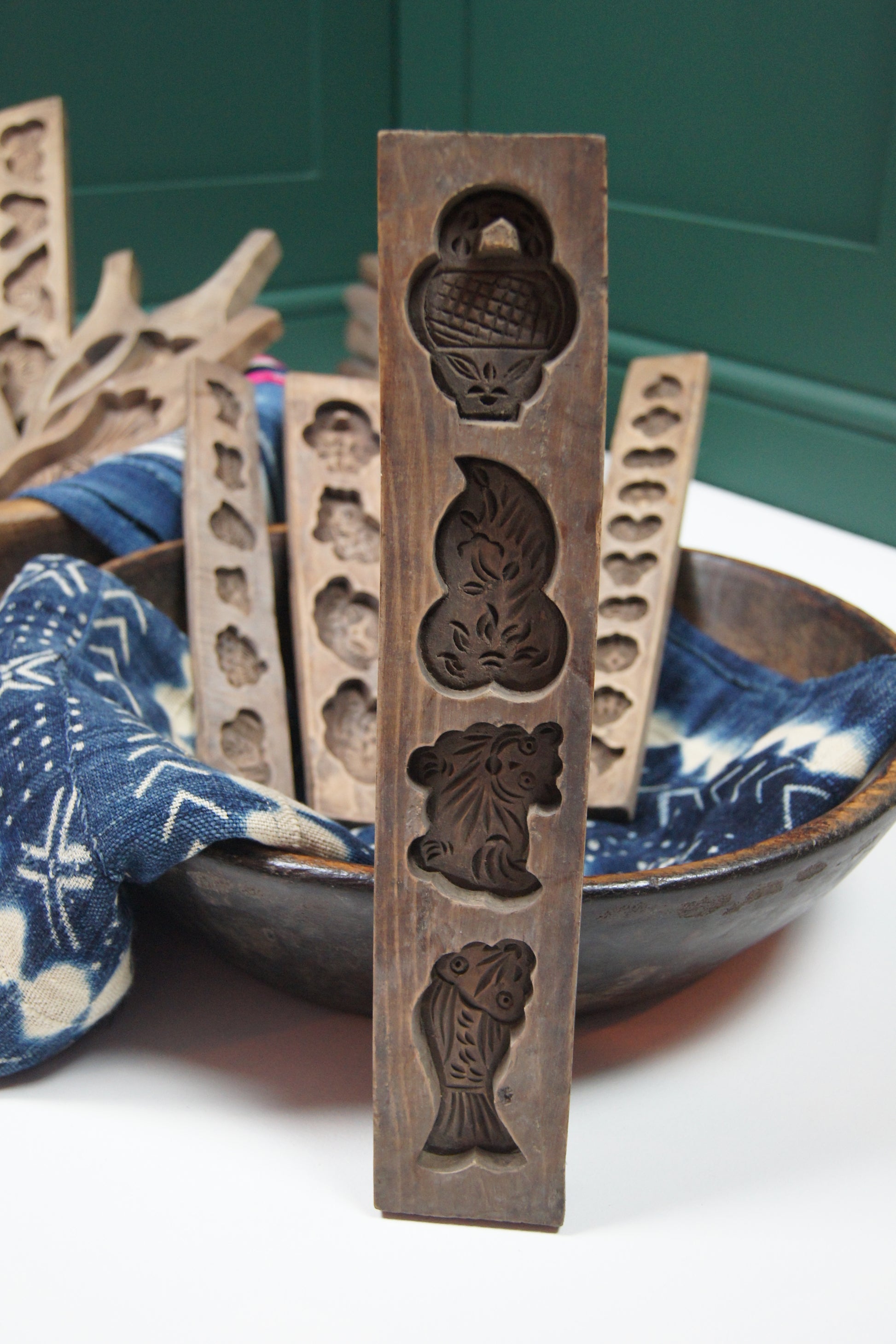 Add a dash of tradition and charm to your home with these vintage Chinese/Japanese cake mold. Traditionally used for crafting delightful sweets, moon cakes, or shaping rice and other foods. Whether you use it for baking or as a stunning display, these vintage treasures bring a playful touch of culture and creativity to your culinary space.