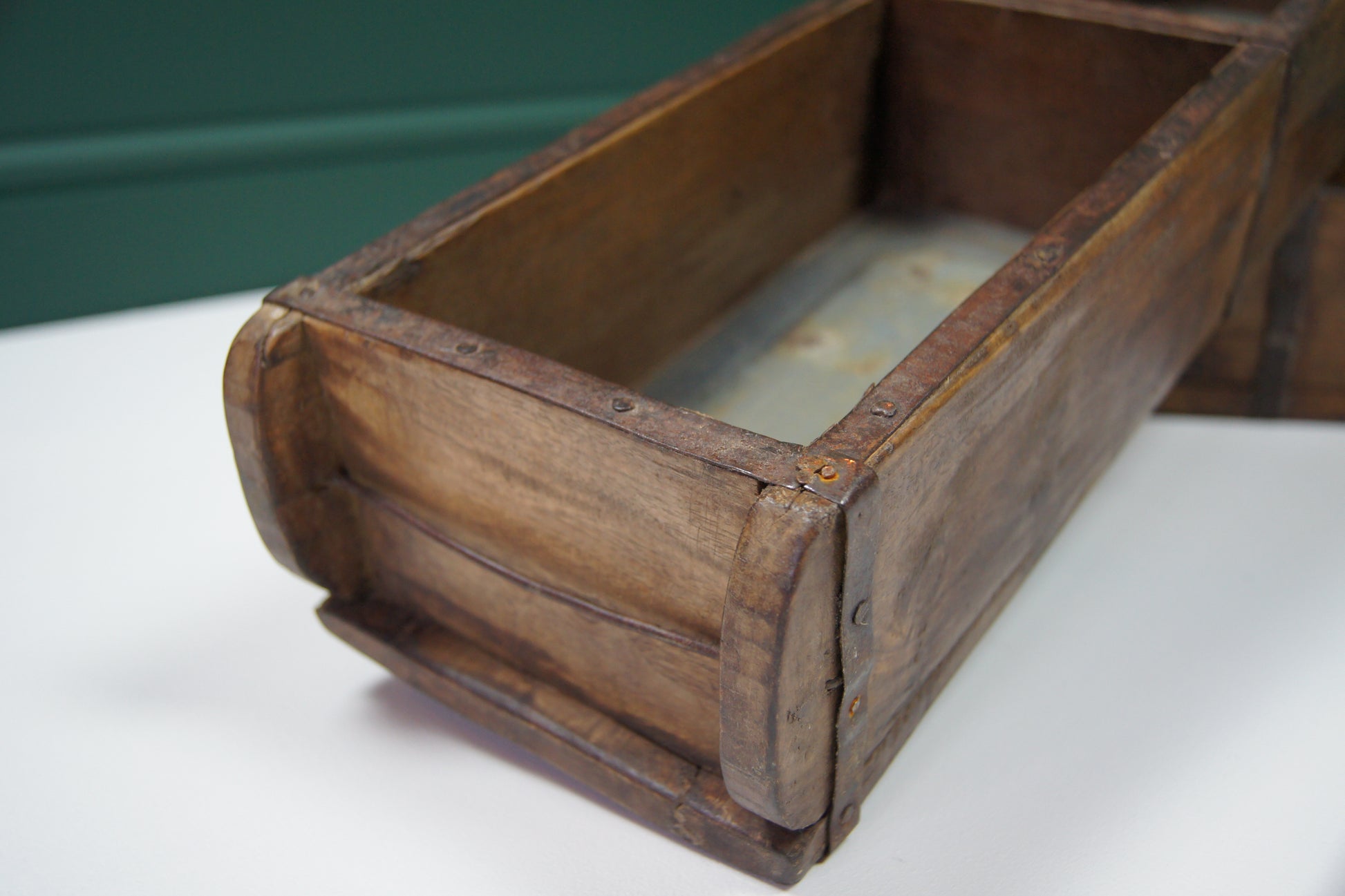 Crafted in India, these vintage double wooden brick molds bring authentic rustic charm to any space. Their sturdy double-compartment design lends itself to versatile uses, from practical storage boxes to stylish planters for herbs and flowers. When mounted on a wall, they transform into eye-catching industrial style display shelves.