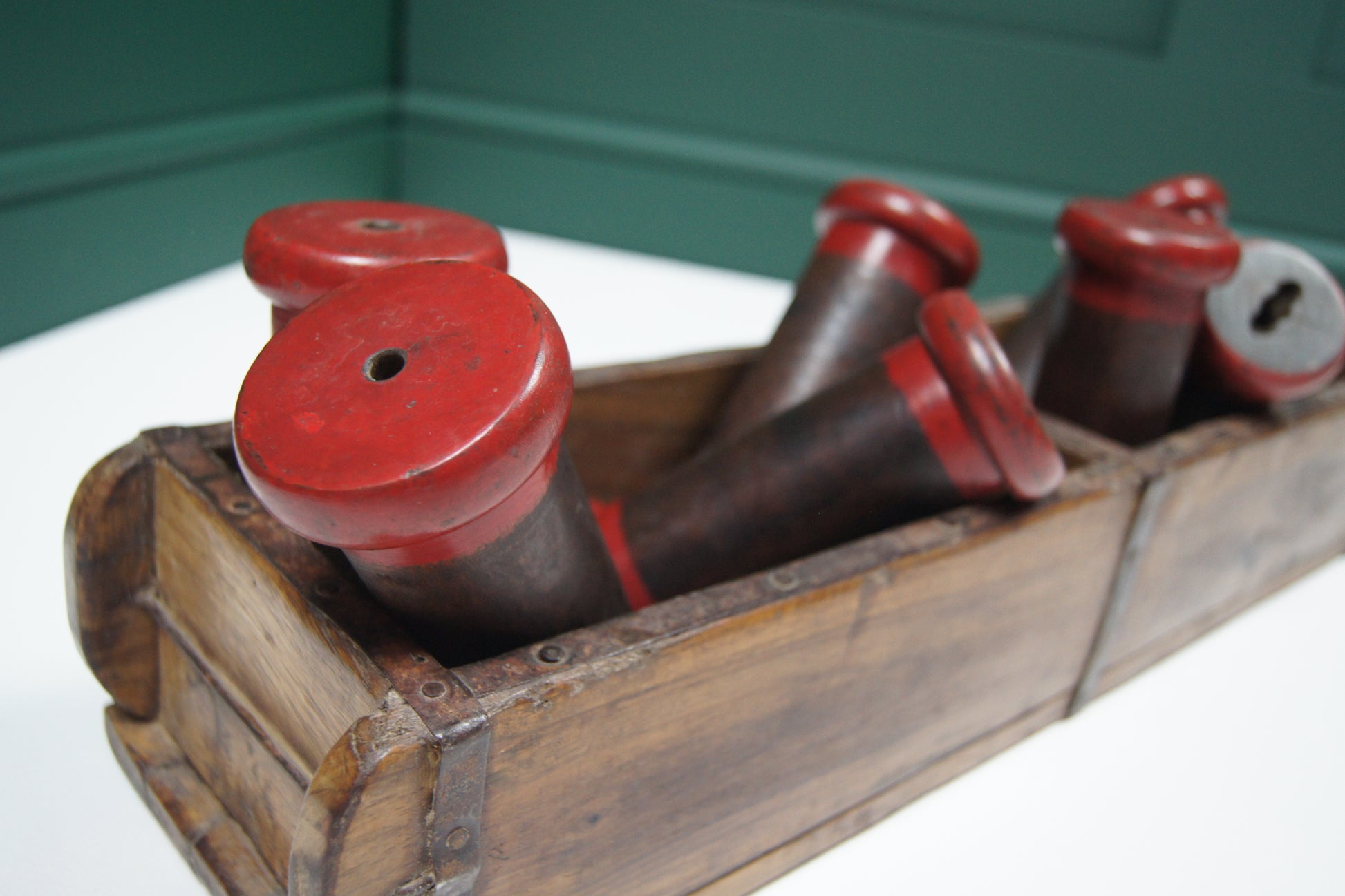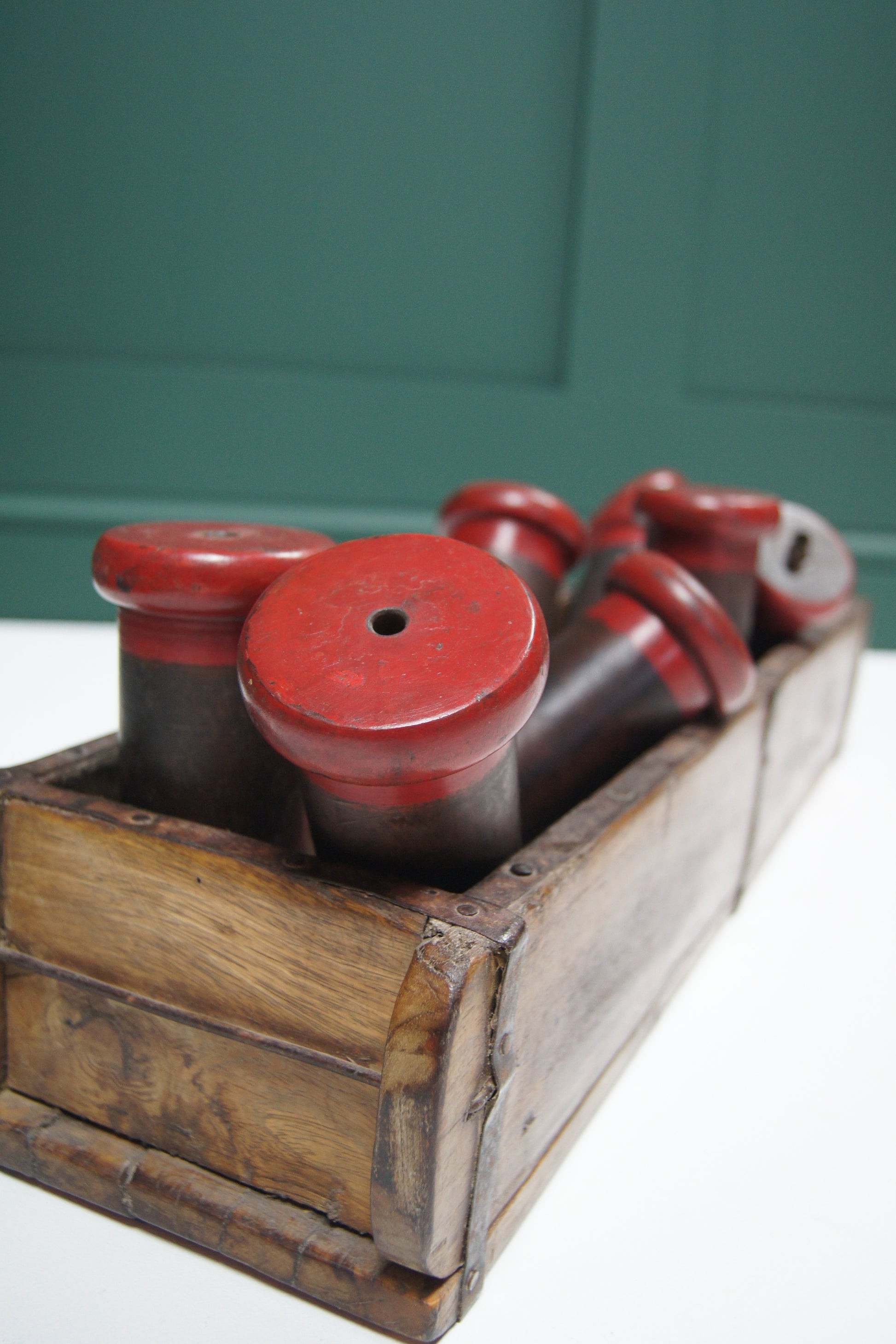 Add a touch of charm with our vintage wooden bobbin reels, featuring red painted details. Perfect for crafting projects or as a quirky decoration around the home!