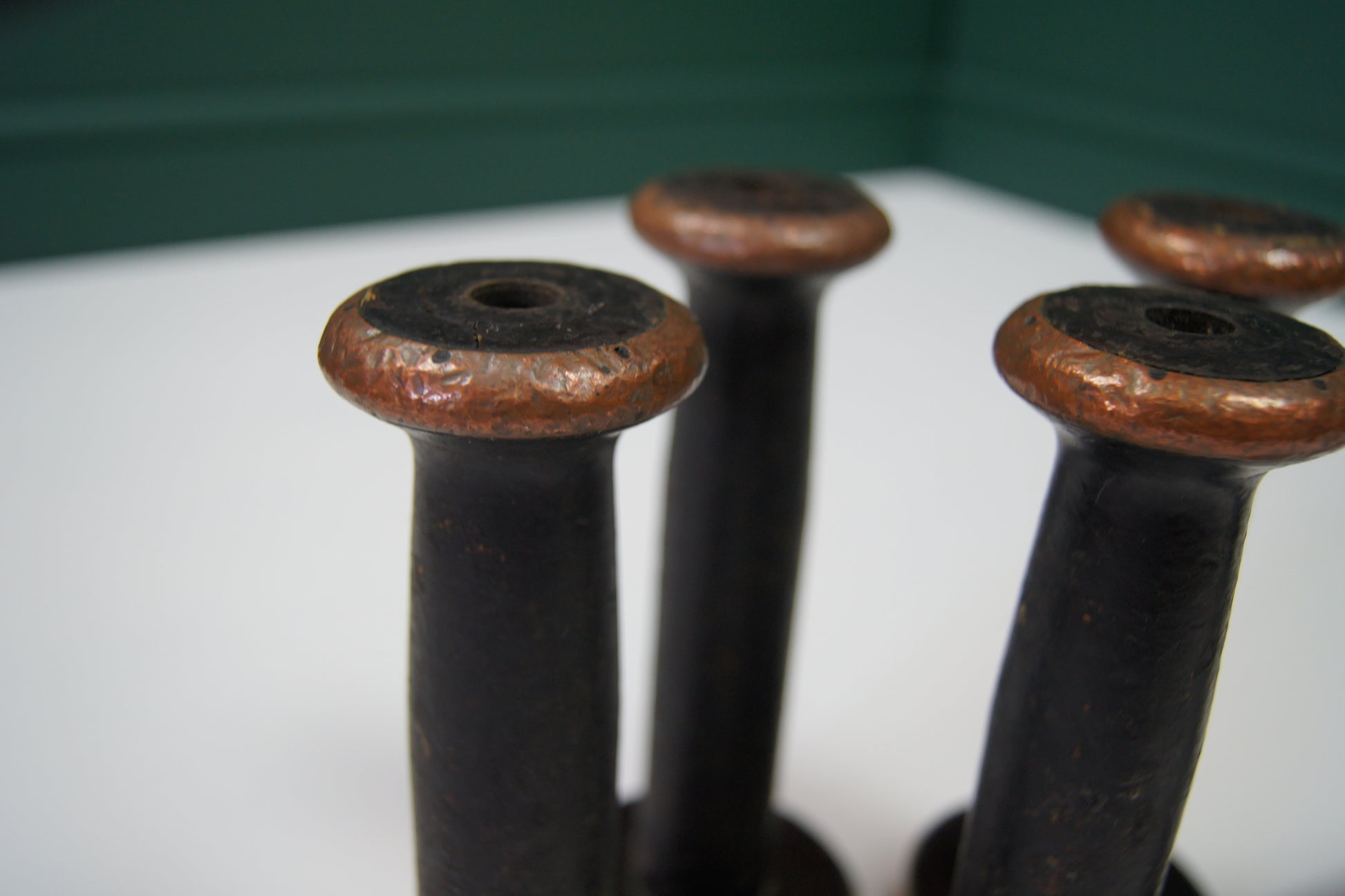 Add a touch of charm with our vintage wooden bobbin reels, featuring copper and brass details. Perfect for crafting projects or as a quirky decoration around the home!
